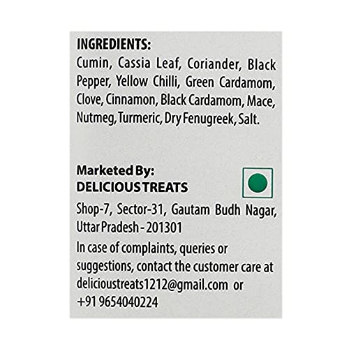 Cumin, Casia Leaf, Coriander, Black Pepper, Yellow Chilli, Green Cardamom, Clove, Cinnamon, Black Cardamom, Mace, Nutmeg, Turmeric, Dry Fenugreek, Salt