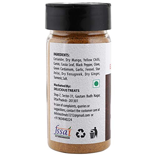 | Ingredients | Coriander, Dry Mango, Yellow Chilli, Cumin, Casia Leaf, Black Pepper, Clove, Green Cardamom, Garlic, Fennel, Star Anise, Dry Fenugreek, Dry Ginger, Turmeric, Salt |