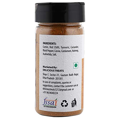 Ingredients ‎‎Cumin, Red Chilli, Turmeric, Coriander, Black pepper, Cassia, Cardamom, Nutmeg, Asafoetida, salt