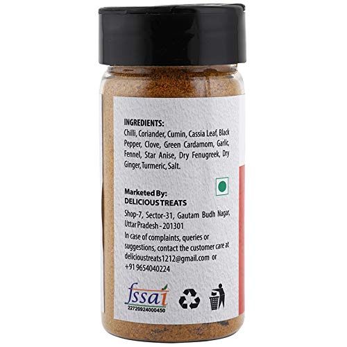 | Ingredients | Chilli, Coriander, Cumin, Casia Leaf, Black Pepper, Clove, Green Cardamom, Garlic, Fennel, Star Anise, Dry Fenugreek, Dry Ginger, Turmeric, Salt |