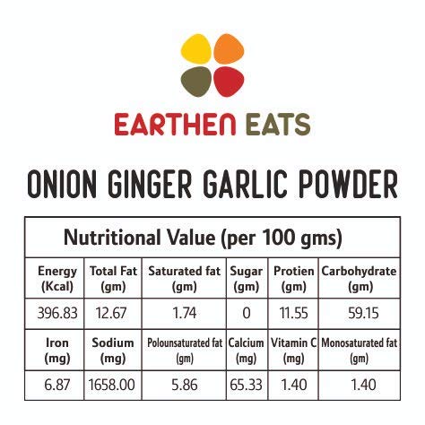 | Ingredients | Dry Onion, Dry Ginger, Dry Garlic |